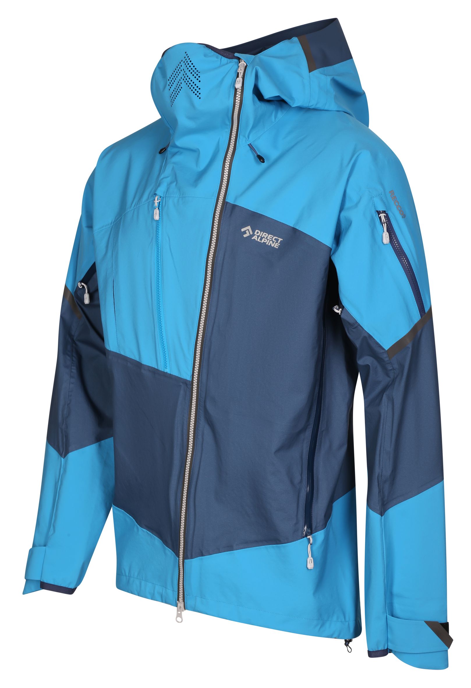 Geaca de exterior include o capotă mare, bine concepută, cu ajustare pe trei direcții, care poate fi trasă peste un casca. Capota poate fi folosită și pentru a împacheta geaca în rucsac. Fermoarele lungi de ventilație de pe părți sunt accesibile chiar și cu bretelele rucsacului și sunt concepute pentru a permite accesul la buzunarele stratului intern. Prin combinarea unui material mai rezistent în zonele cu stres ridicat (umeri, mâneci, glugă și spate) cu un material mai subțire în zonele mai puțin solicitate, geaca obține un echilibru optimizat între durabilitate, respirabilitate extremă și greutate.