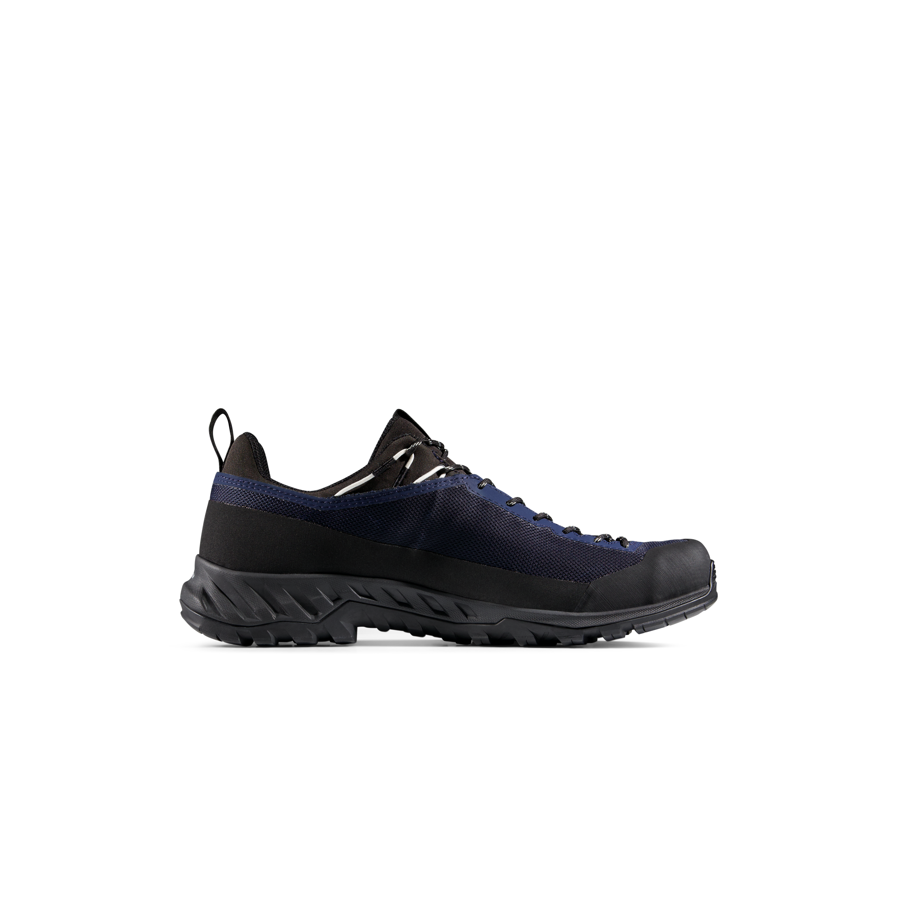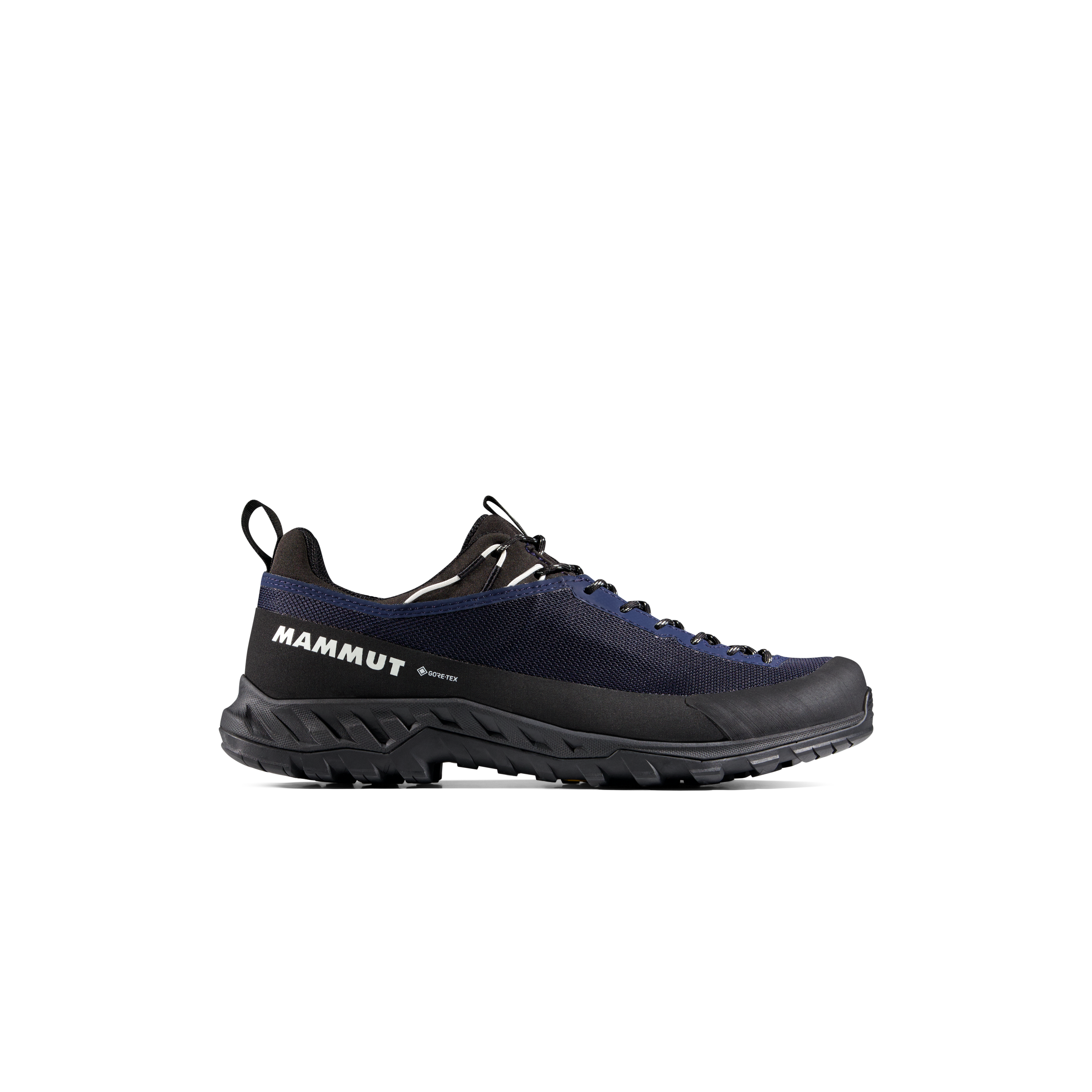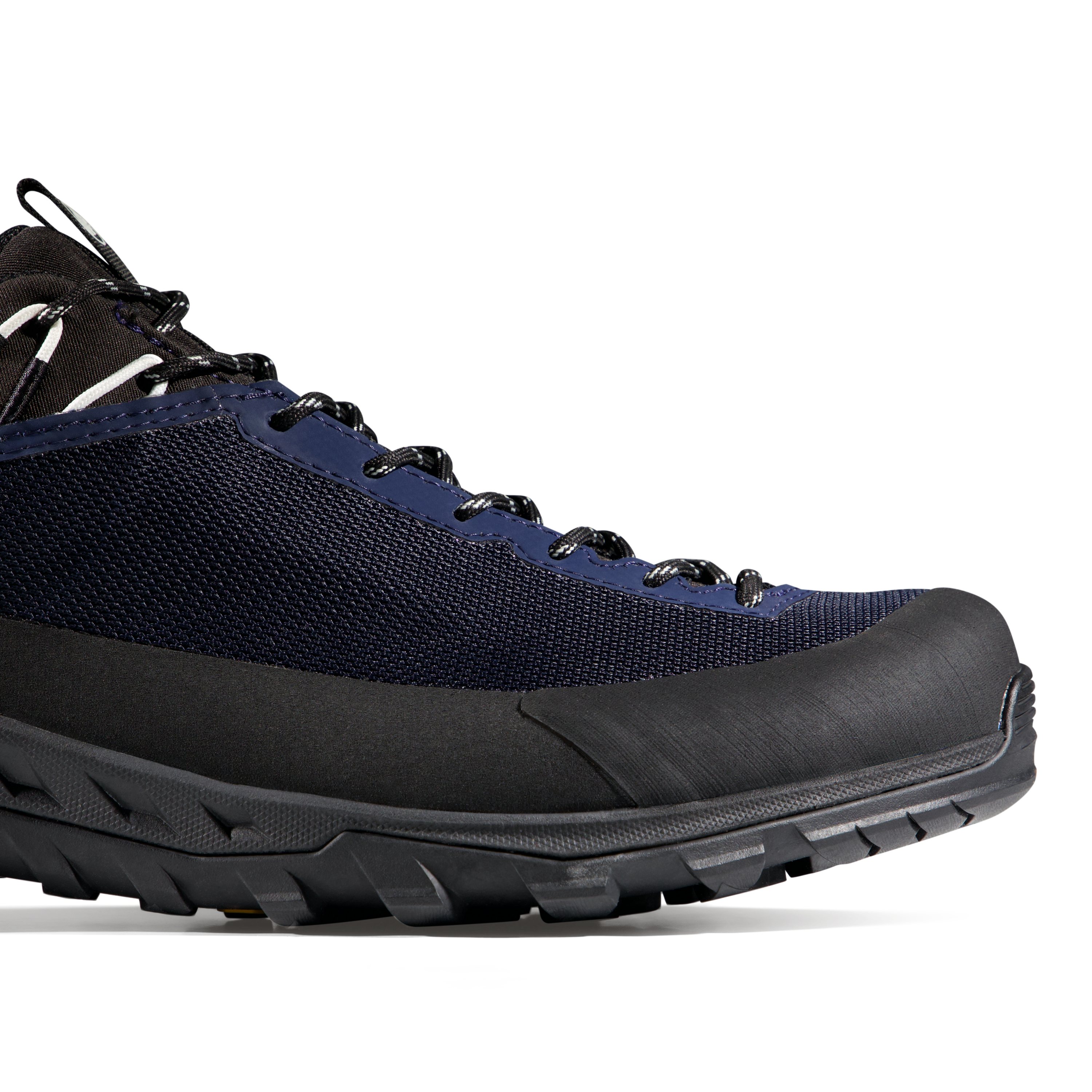 The Vibram® XS Trek outsole with Traction Lug™ is built for a high level of grip, and in the product benefits section Mammut also highlights a climbing zone for dependable traction and durability on unpredictable terrain. Additional protection comes from the rubber toe cap and raised rubber rand, which improve durability and help shield the shoe on rocky and abrasive surfaces.