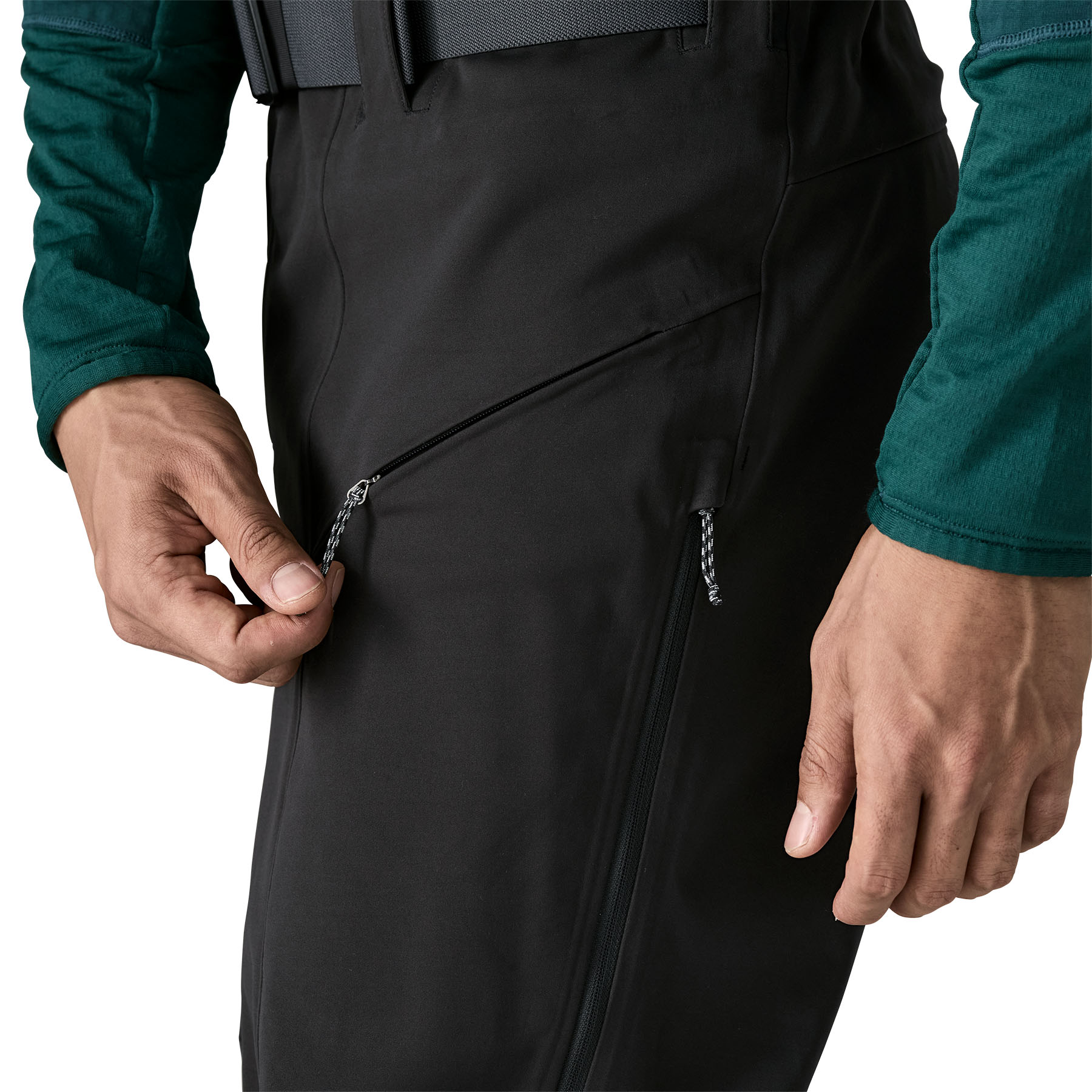 Stretchy, weather-resistant bonded soft-shell fabric is PFC-free and has a knit-grid backer that slides effortlessly over skin and baselayers