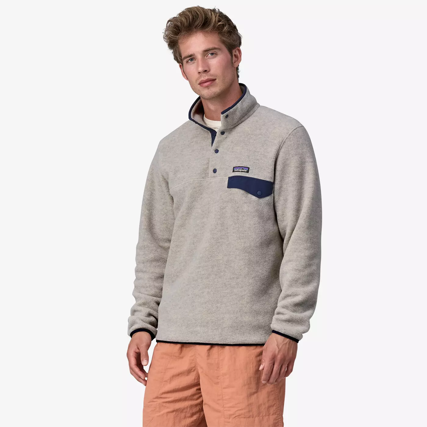 Classic pullover Snap-T styling includes a four-snap recycled nylon front placket for easy venting, a stand-up collar for soft warmth on your neck, and Y-Joint sleeves for increased mobility