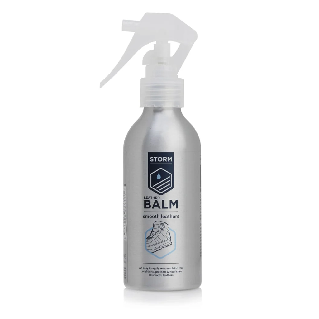 Storm Leather Balm is a specialised care product designed for smooth leather footwear, boots, jackets, bags and other leather goods. It is formulated as a water-based emulsion that penetrates the leather fibres, nourishing and maintaining the material’s natural softness and strength. The balm helps restore flexibility and provides a protective layer that reduces moisture penetration and enhances resistance against environmental wear.