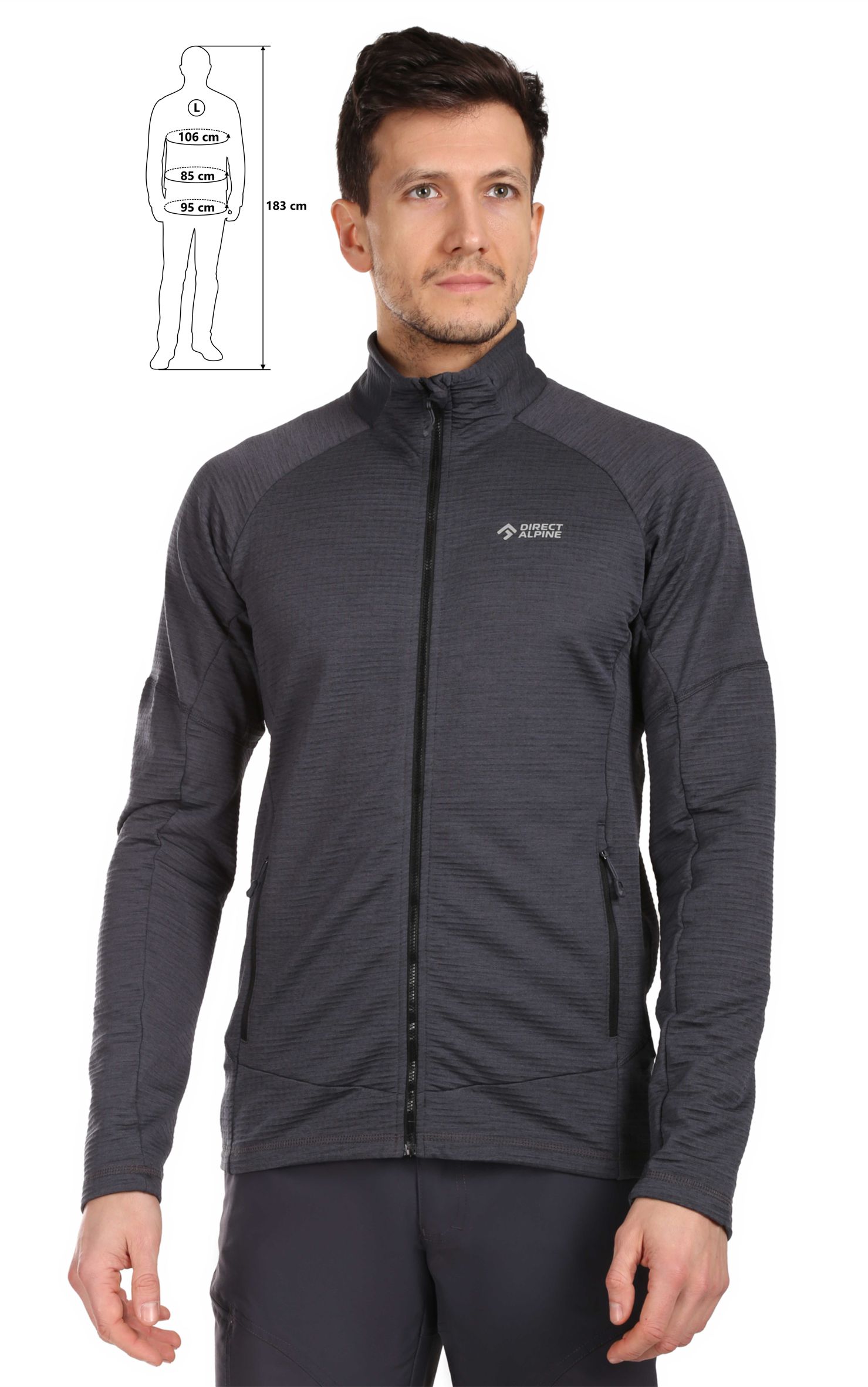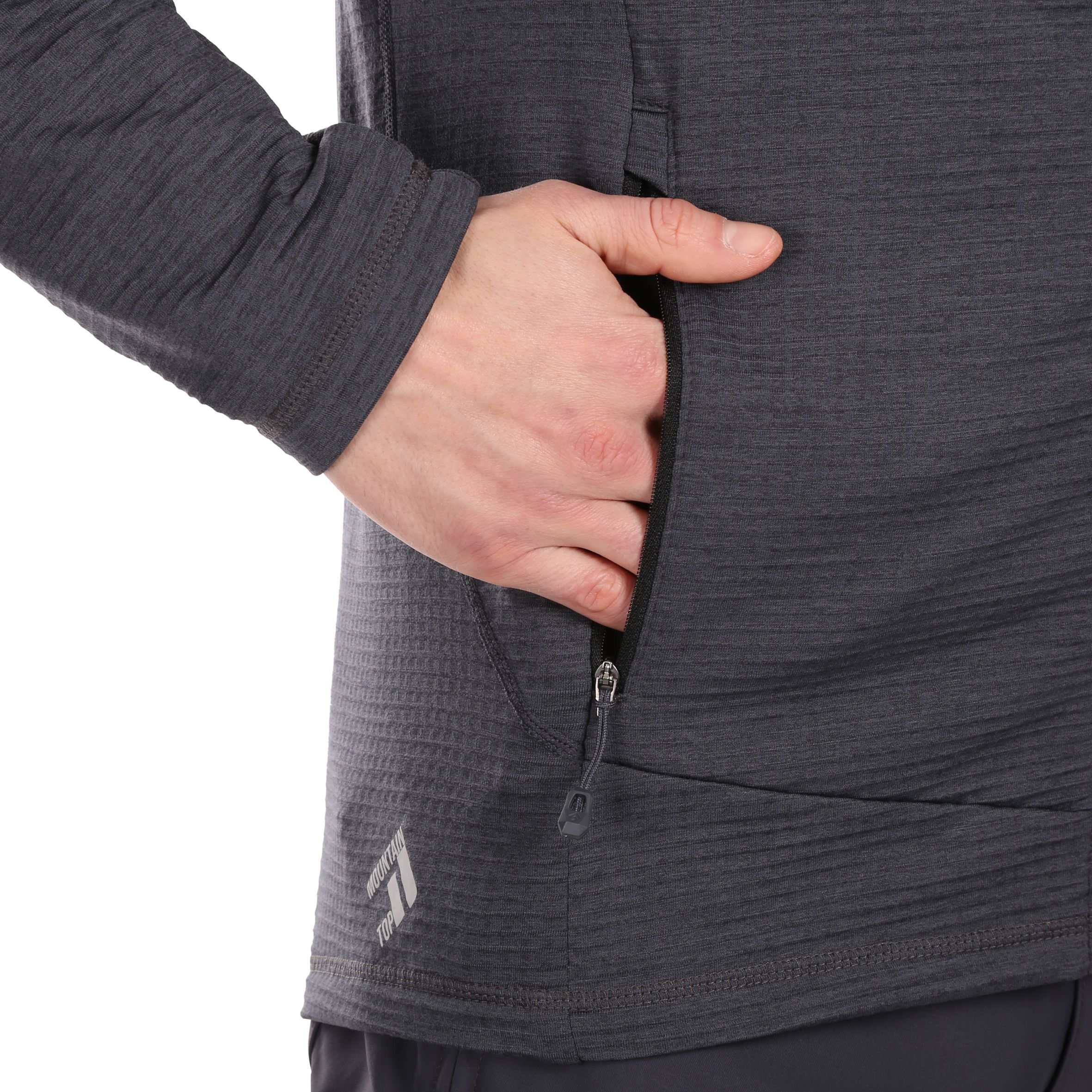 The CIMA fleece sweatshirt is a technical insulation layer made from recycled Kinetix Grid fleece, designed to wick away excess moisture and keep you dry and comfortable in any condition. The fabric is lightweight, breathable, and stretchy, making it ideal for mountain expeditions, ski touring, climbing, or casual urban use.